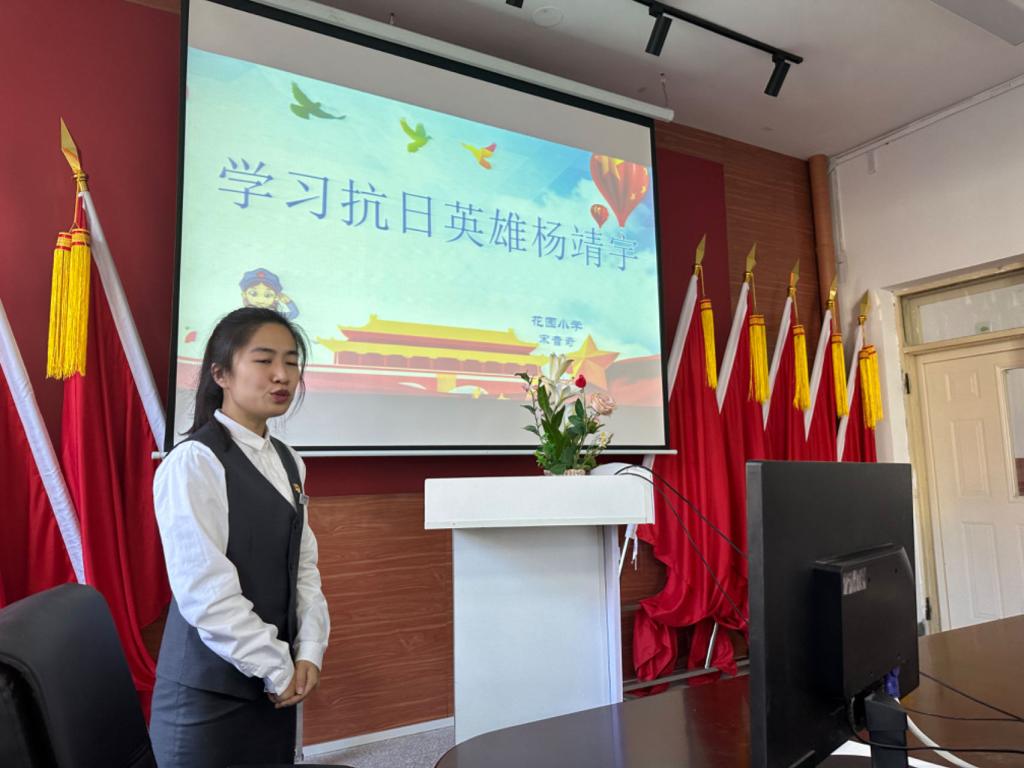 花园小学宋音奇老师以《学习抗日英雄杨靖宇》为主题,向员工们讲述抗日英雄杨靖宇将军的事迹,激发小员工们的爱国情怀。