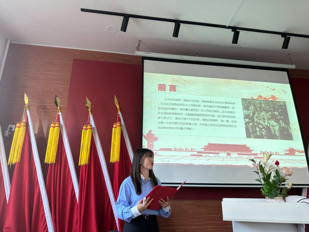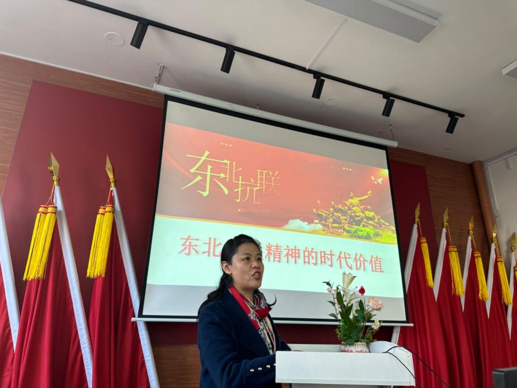 经开区实验公司周莹老师以《东北抗联精神的基本内涵》为主题,围绕“坚定的信仰信念”,“高尚的爱国情操”,“伟大的牺牲精神”对中员工们展开教学。